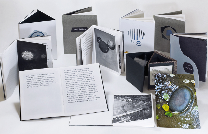 Sometimes a dream just won’t let go...I get intimate with a bronze god, go to Saturn along with Cassini, the NASA probe. We carve rings together into the stardust that circumnavigate this ancient planet. The dream turned into Old Saturn, 10 unique fascicles—different in size, cover design and materials, but sharing the same text. The concrete project continues to continue.
